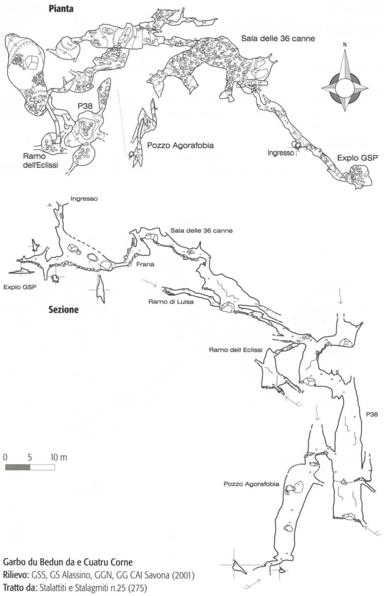 Garbu du Bedun da e Cuatro Corne - pianta e sezione